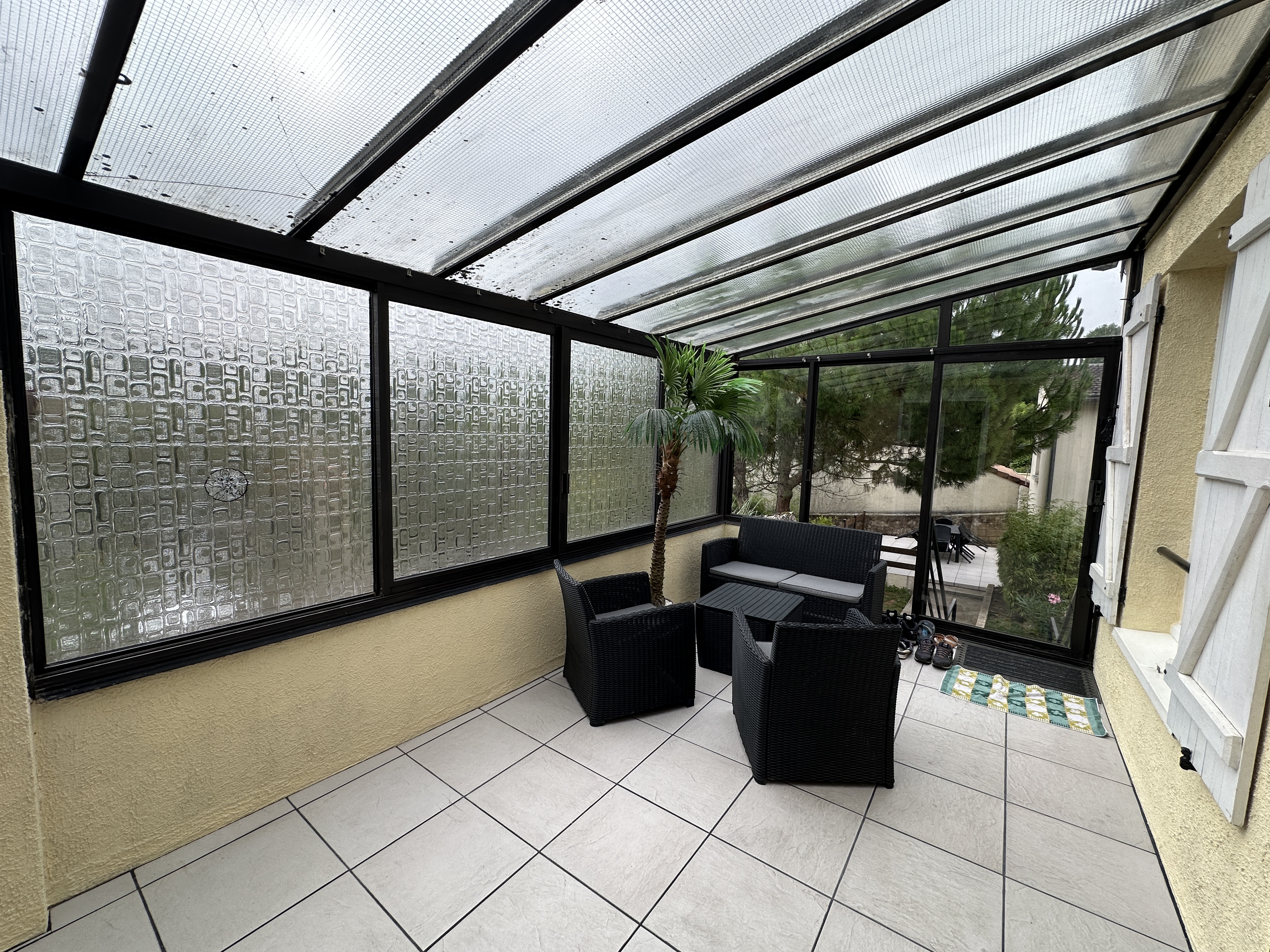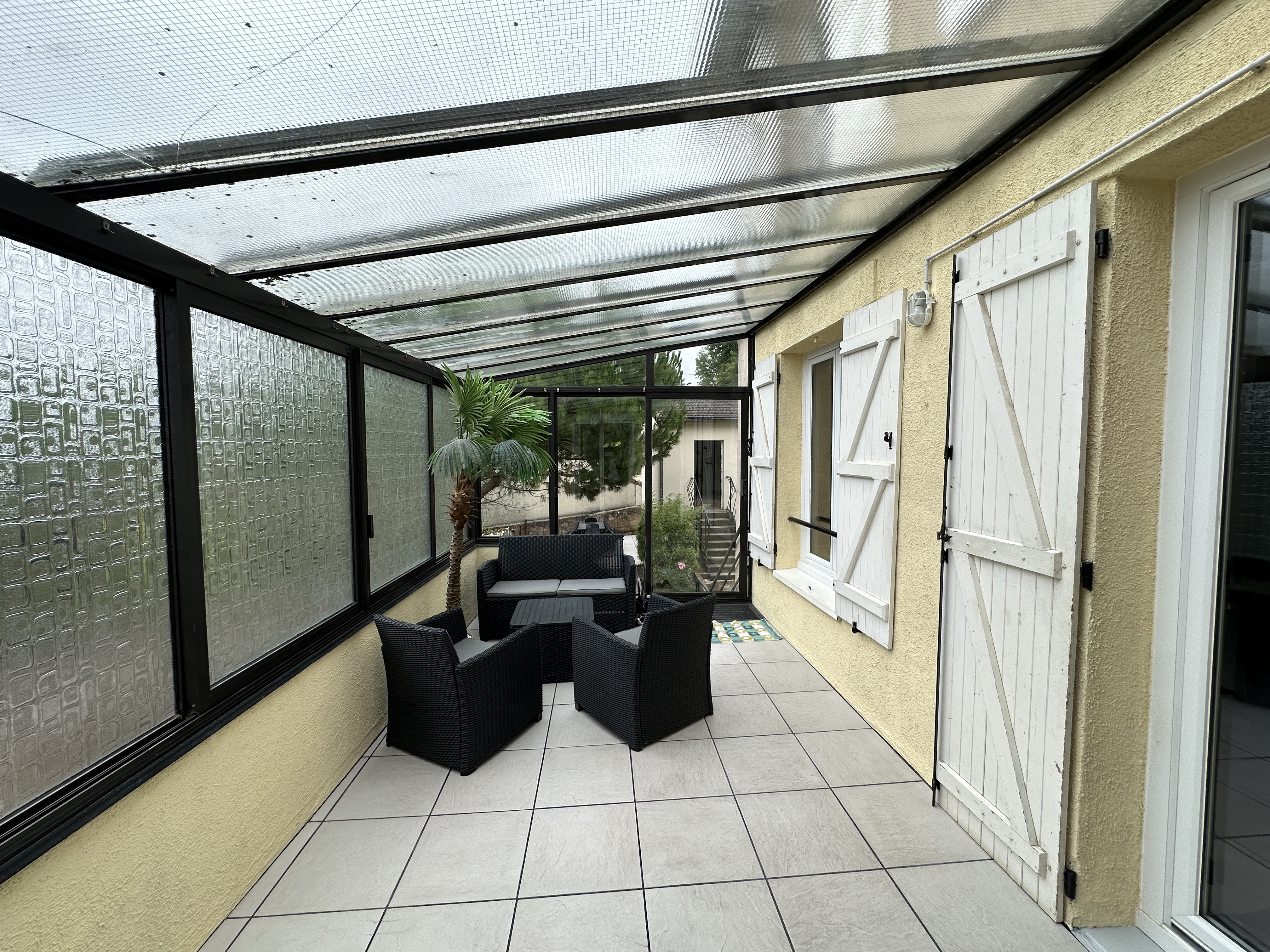 Situation exceptionnelle pour cette maison de ville entièrement rénovée, située à proximité de toutes les commoditées et de la gare: entrée, véranda, salon avec poêle à bois, cuisine aménagée, 4 chambres, salle d'eau, salle de bains, 3 wc, cave totale, garage indépendant de 36m², dépendances, le tout édifié sur un terrain entièremnt clos et à l'abri des regards d'une superficie de 594m². Chauffage gaz de ville, double vitrage PVC, électricité refaite récemment.