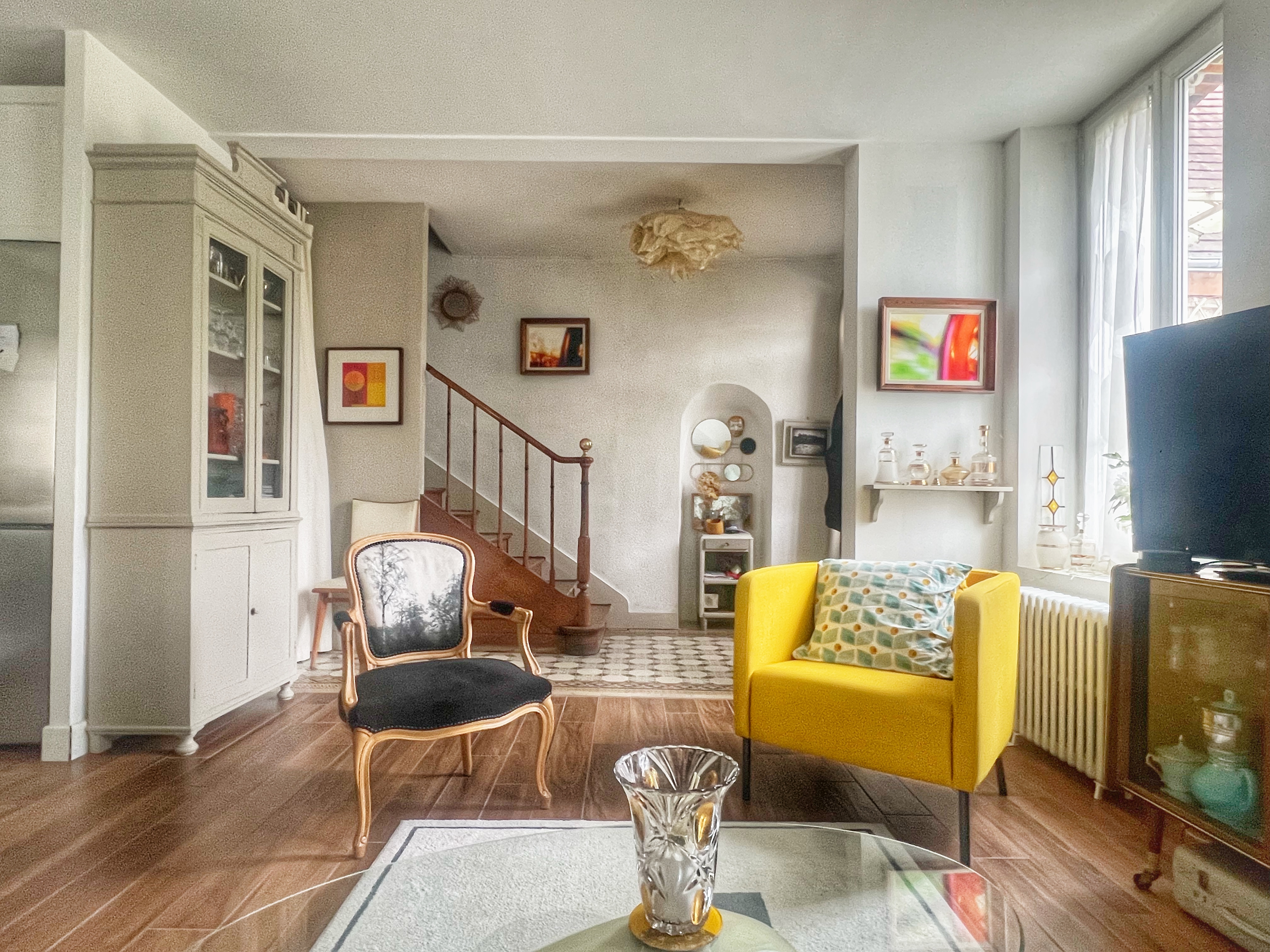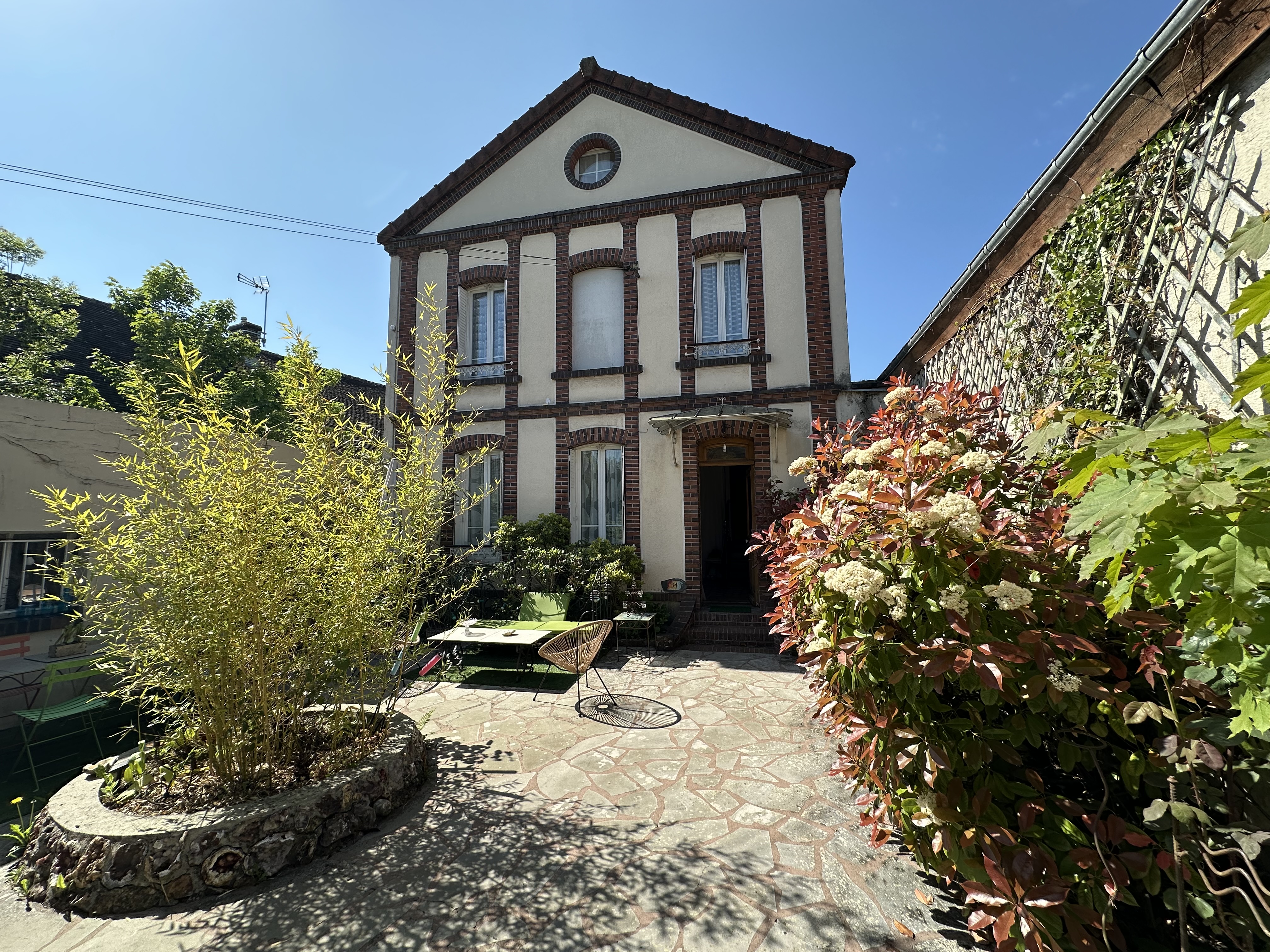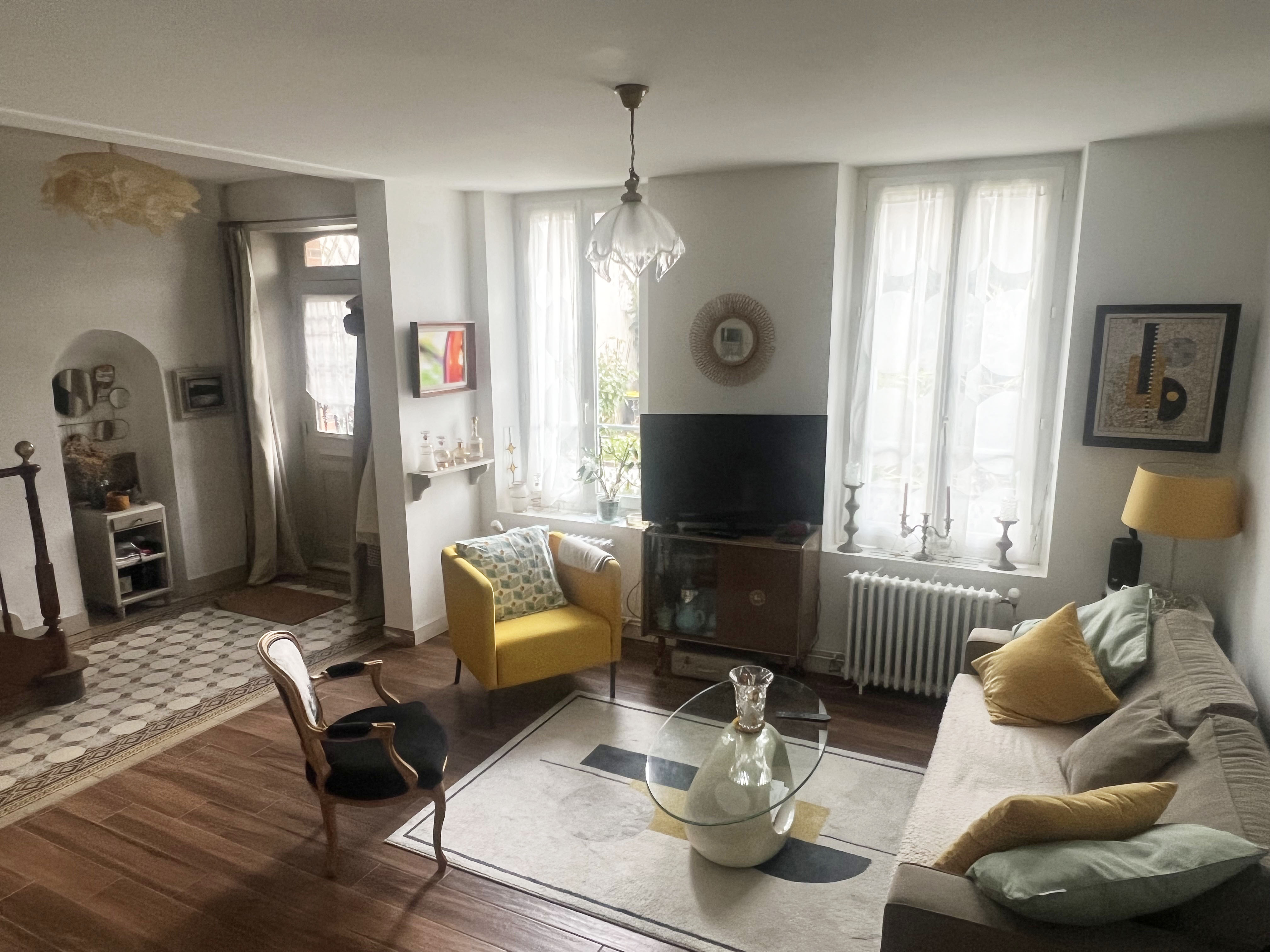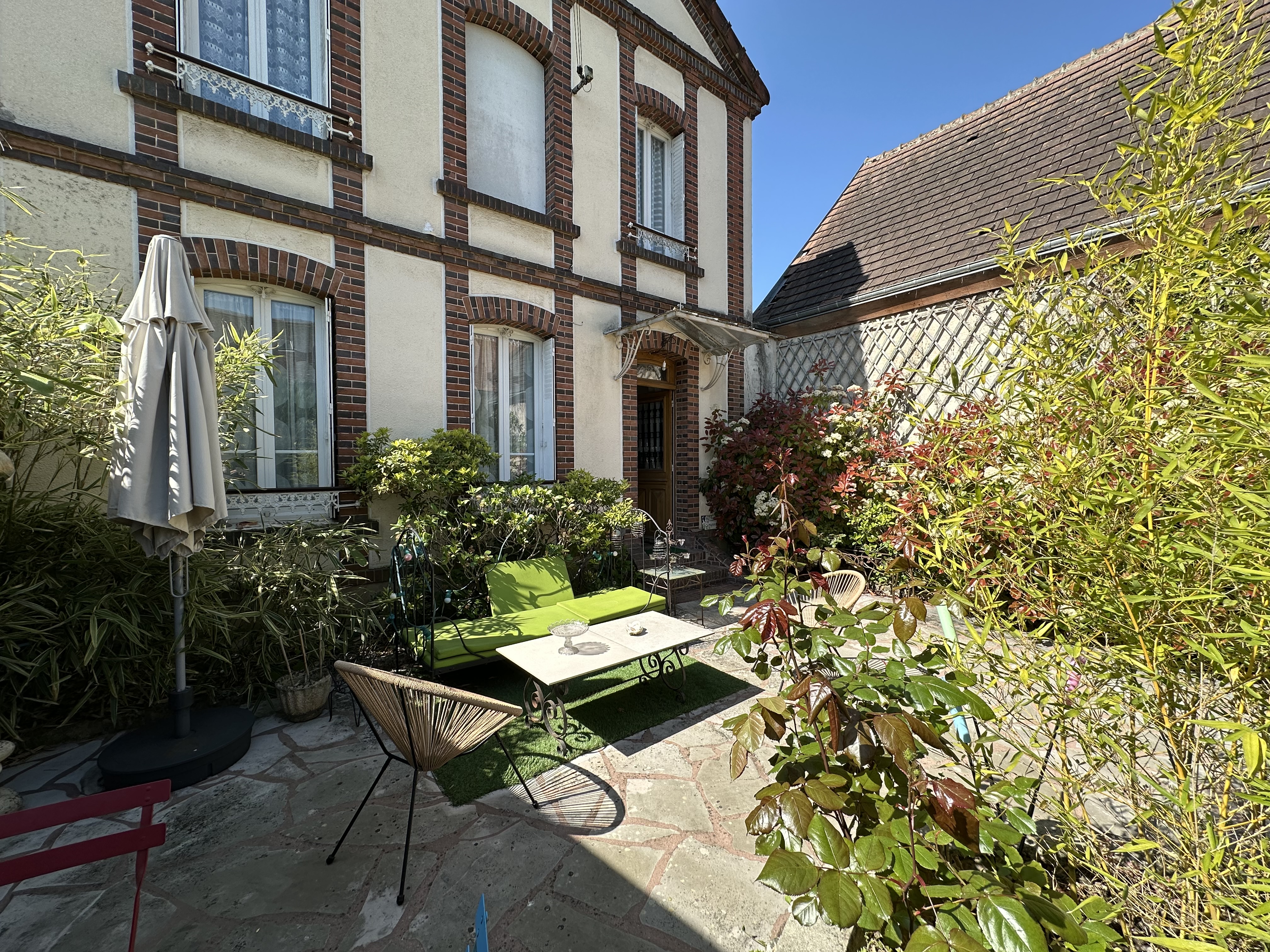 COUP DE COEUR - A proximité immédiate des commerces et à 5 mn de la gare, charmante maison des années 1930 entièrement rénovée avec gout. Elle comprend une belle pièce de vie chaleureuse et lumineuse avec une cuisine équipée au rez de chaussée. l'espace nuit se répartie sur 2 niveaux : une chambre, un bureau et une salle d'eau avec wc un 1er étage, ainsi qu'une chambre de 20m² au sol avec rangements en sous pente, lavabo et wc au dernier niveau. Cave, Garage et cour intime entièrement close de murs sur une parcelle de 175m² environ. Chauffage Gaz de ville, double vitrage PVC.